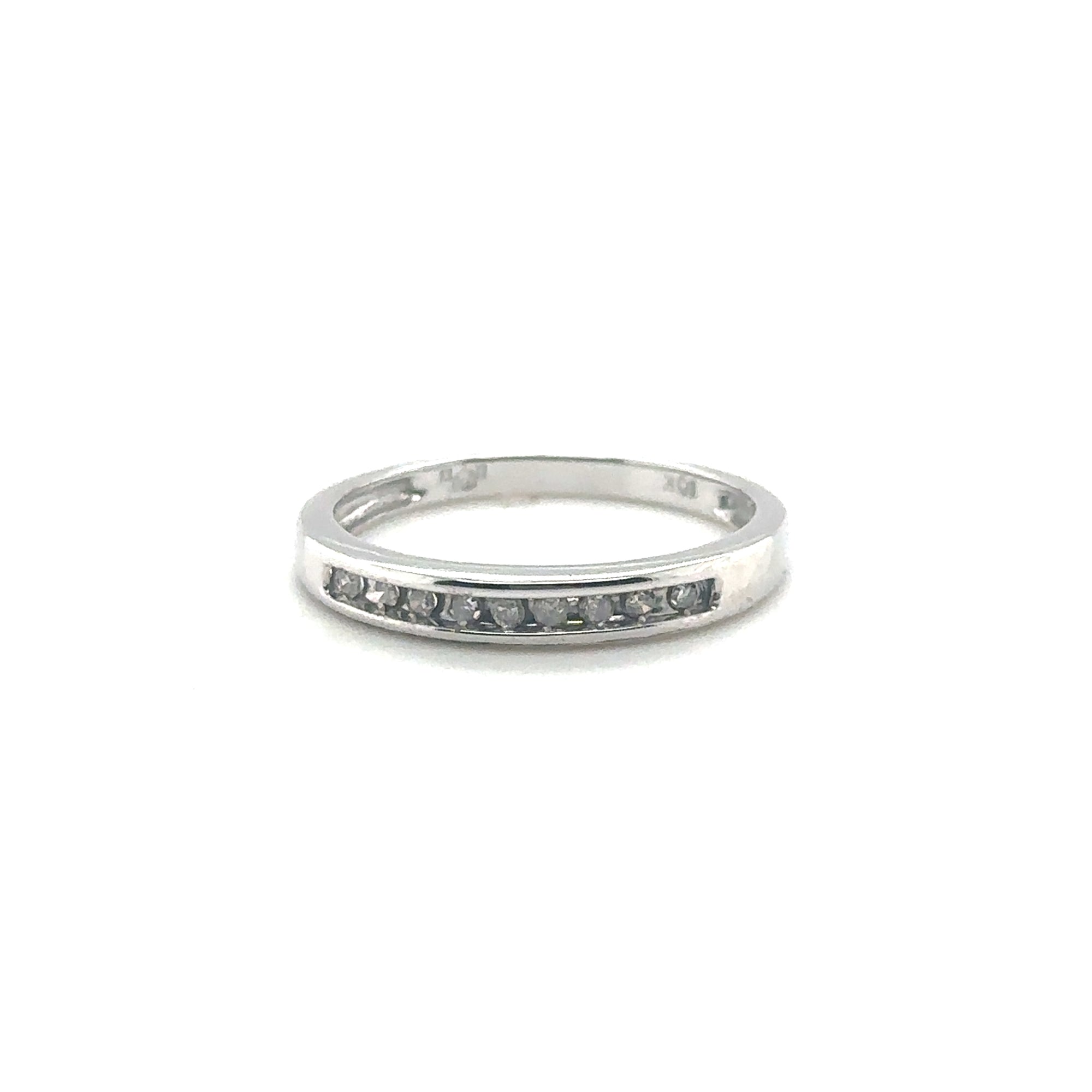 This 10K White Gold Diamond Ring features natural diamonds set in a channel. From our estate and consignment collection.