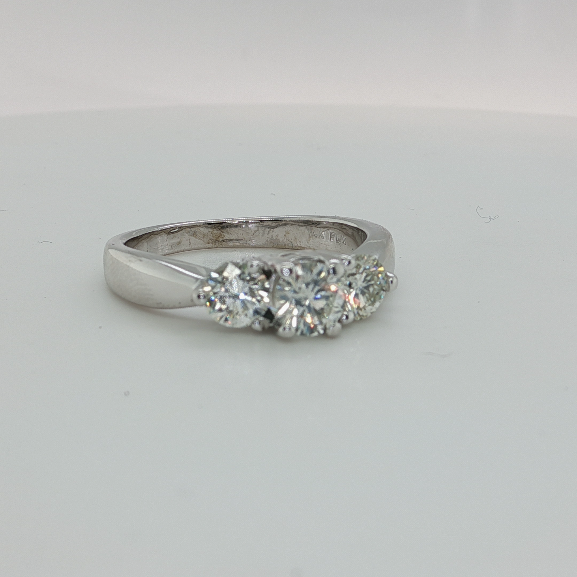 14K WG THREE STONE ROUND NATURAL DIAMOND RING